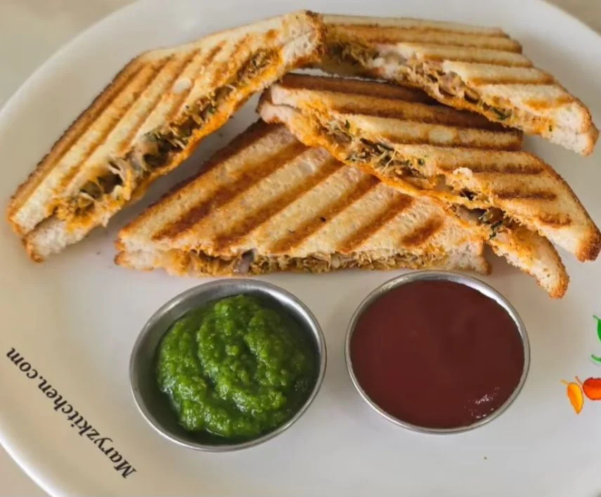 Now use the crab stuffing and make the sandwich toast as shown in the video.