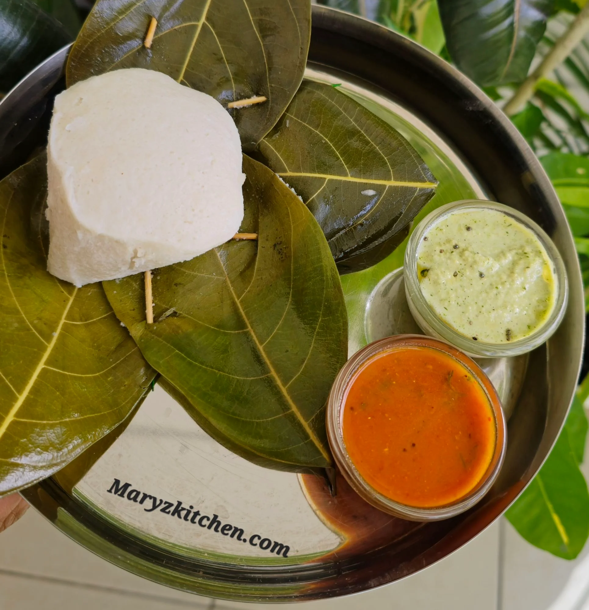 Peel the leaf and serve the idlis with any Southindian accompaniments .[ sambar /chutney ]