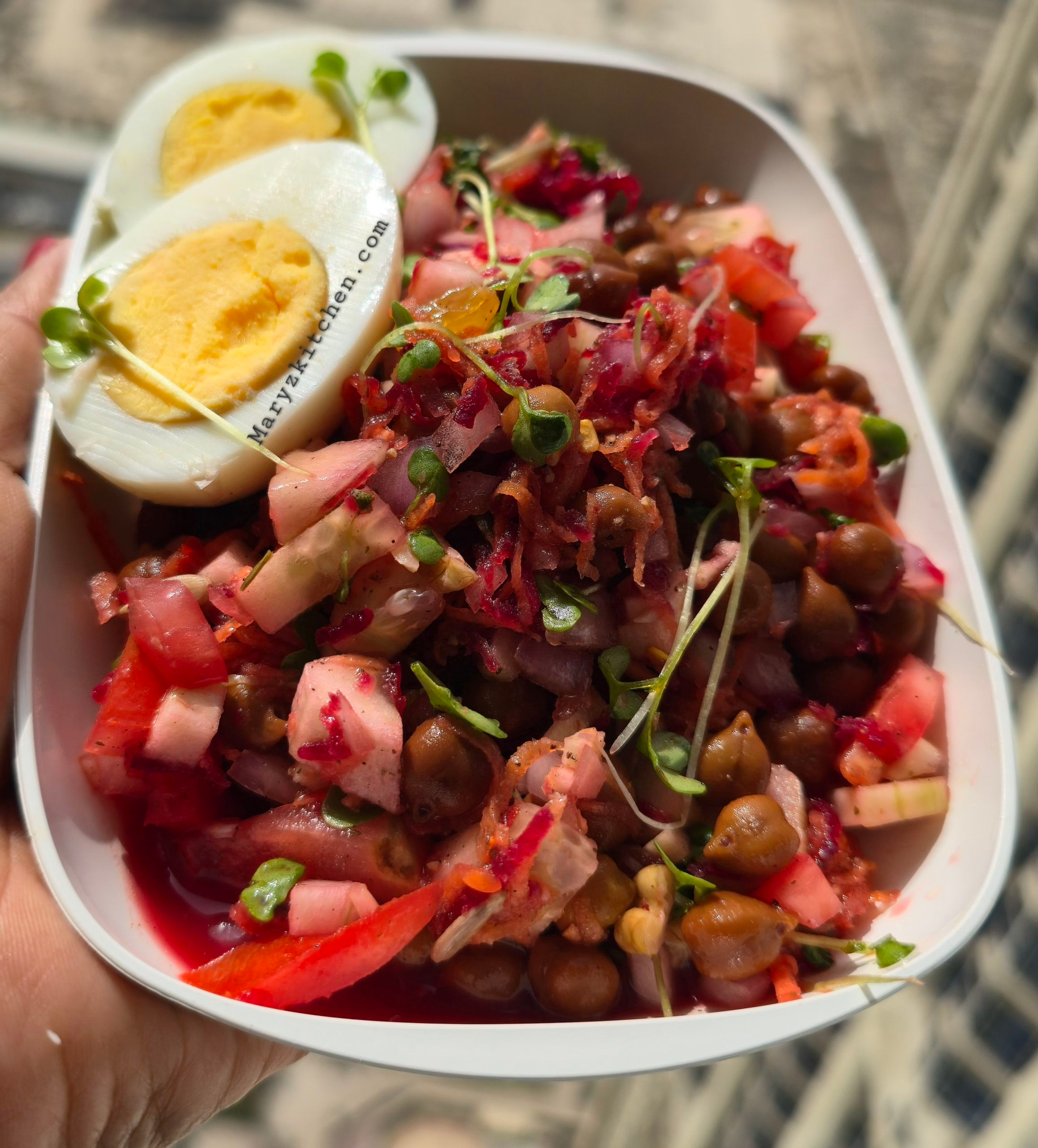 • Mixed veges chopped – 2 to 3 cups [ cucumber, bell peppers red and yellow/ green capsicum/ deseeded tomato , black olives ,onion ]